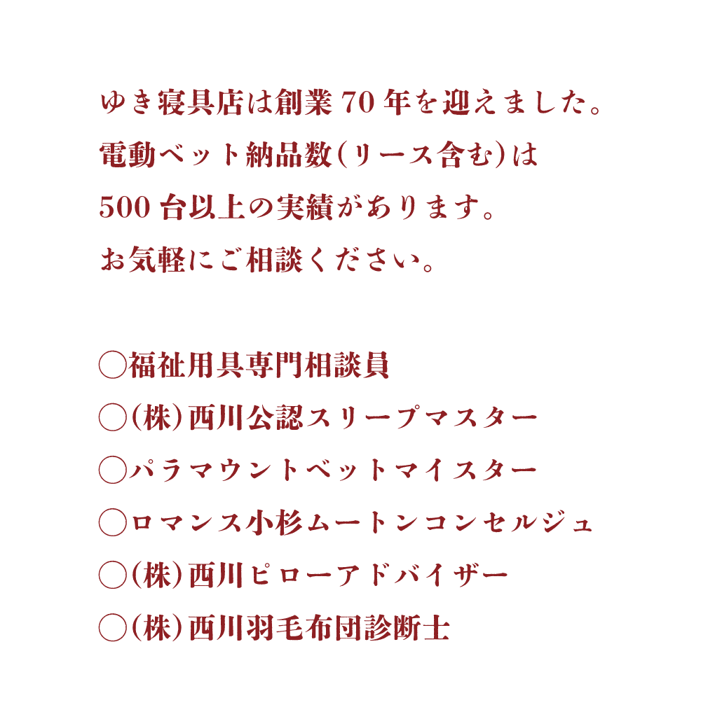ゆきふとん店では、